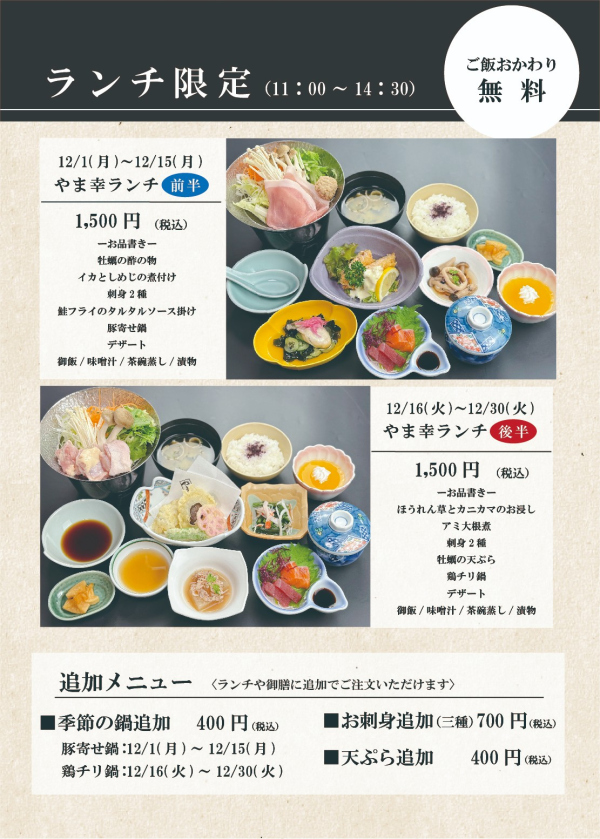 今月のやま幸ランチ