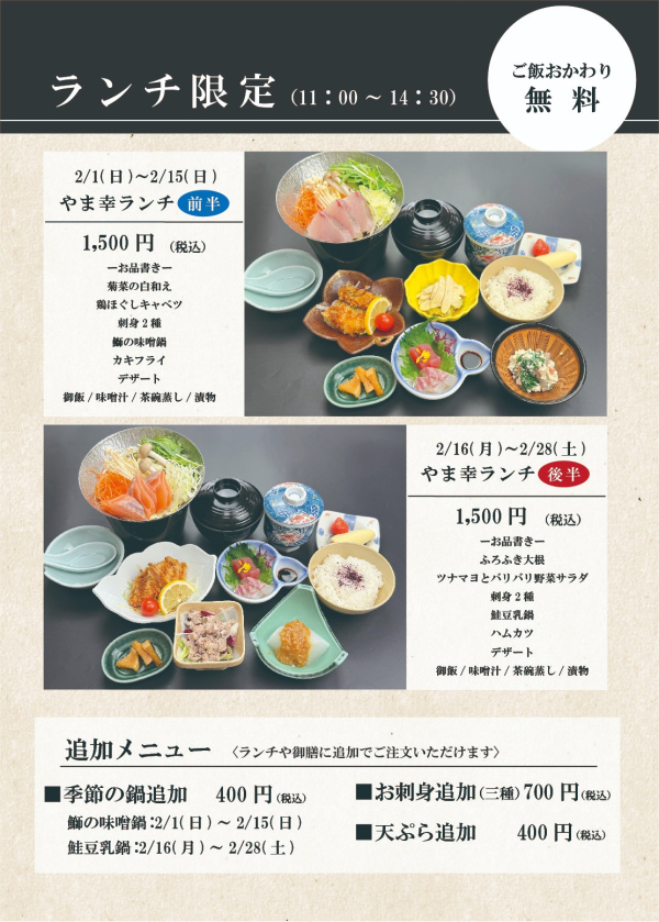 今月のやま幸ランチ